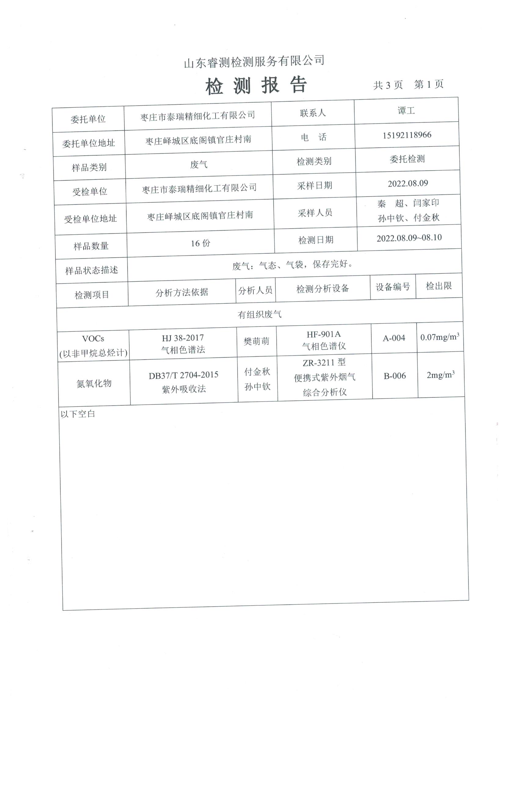 2022年8月份自行檢測報告