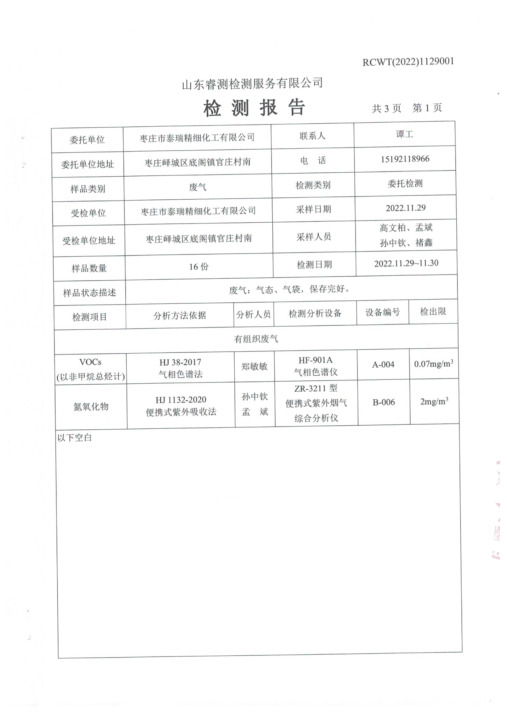 2022年11月份自行檢測報(bào)告