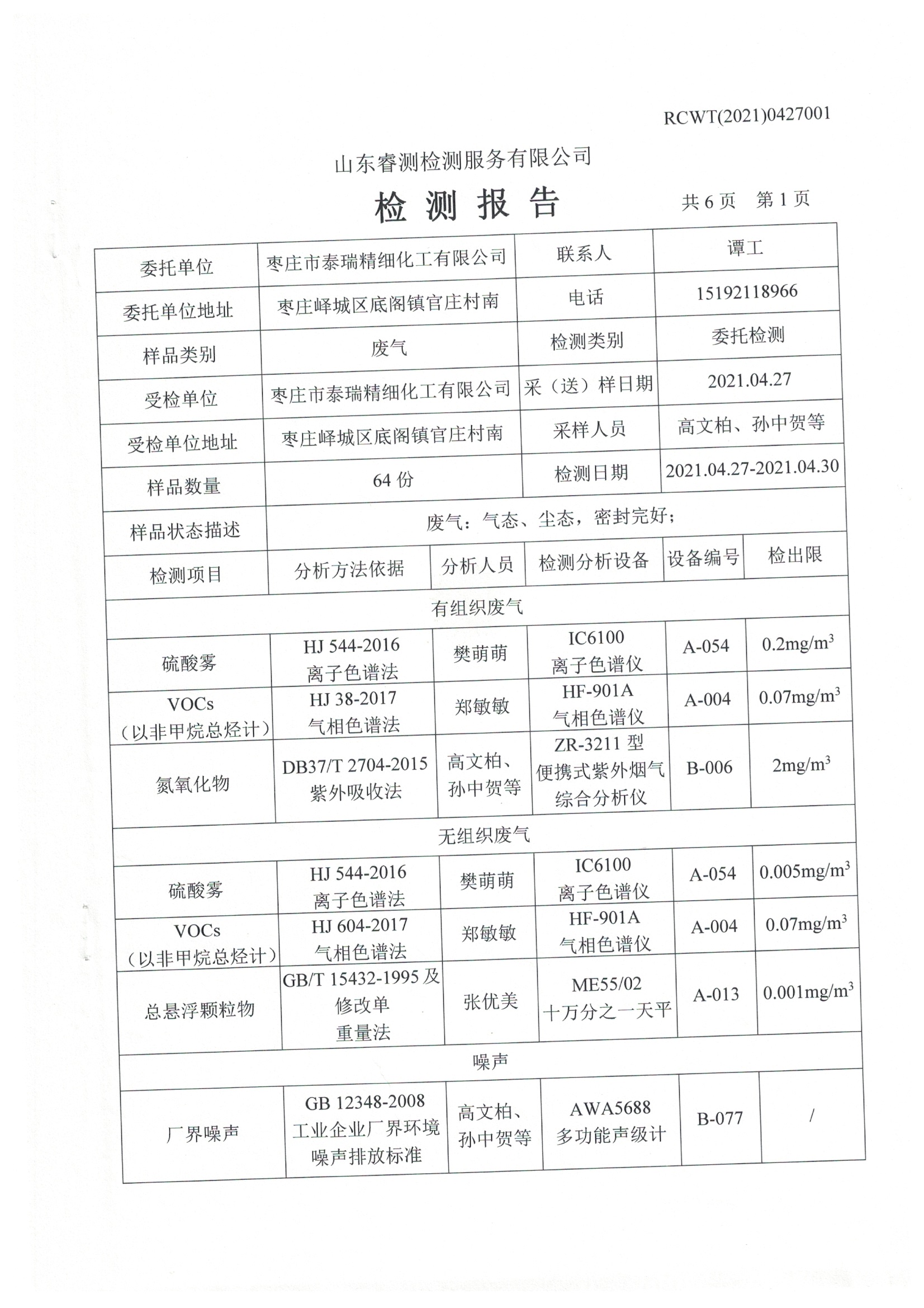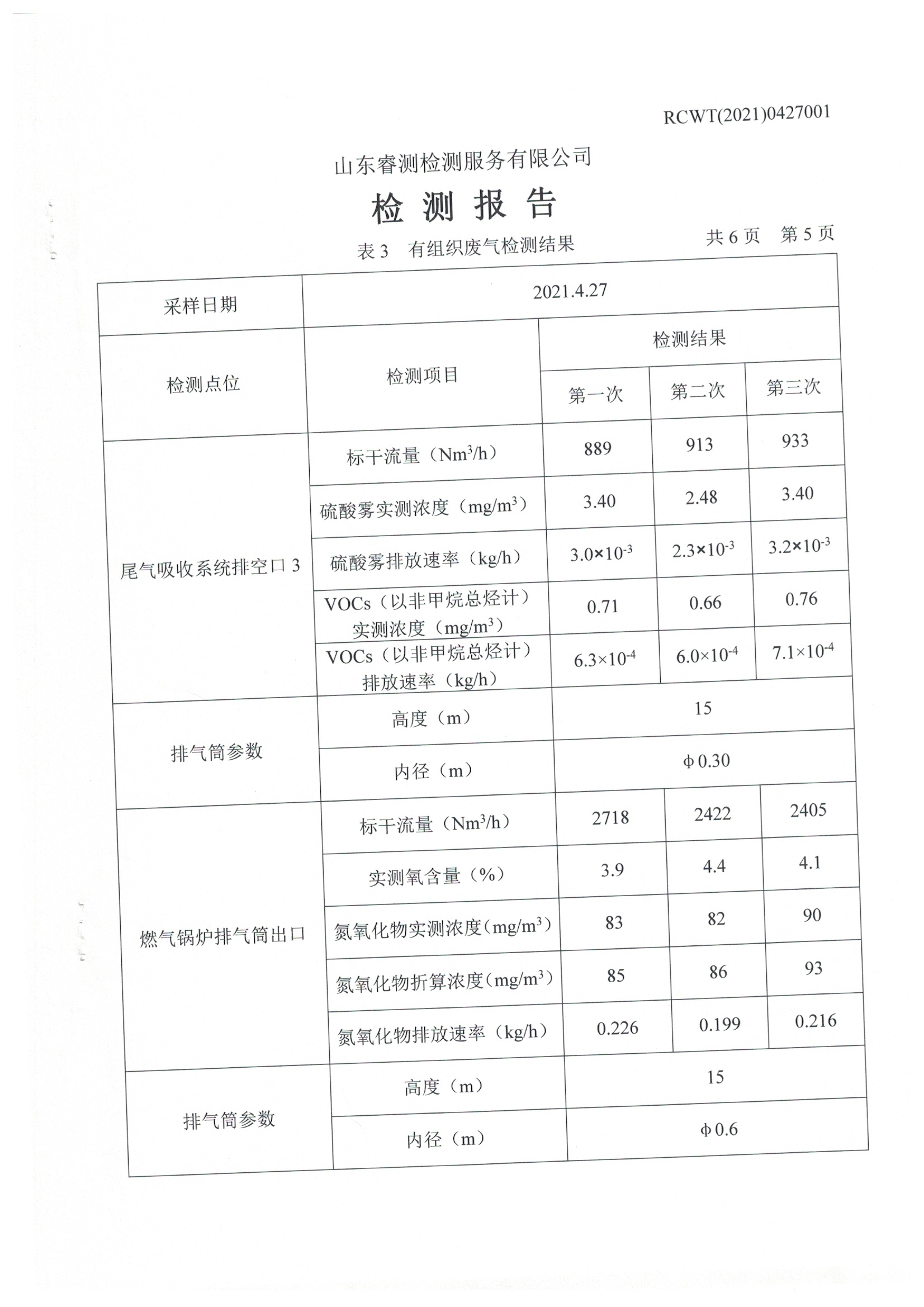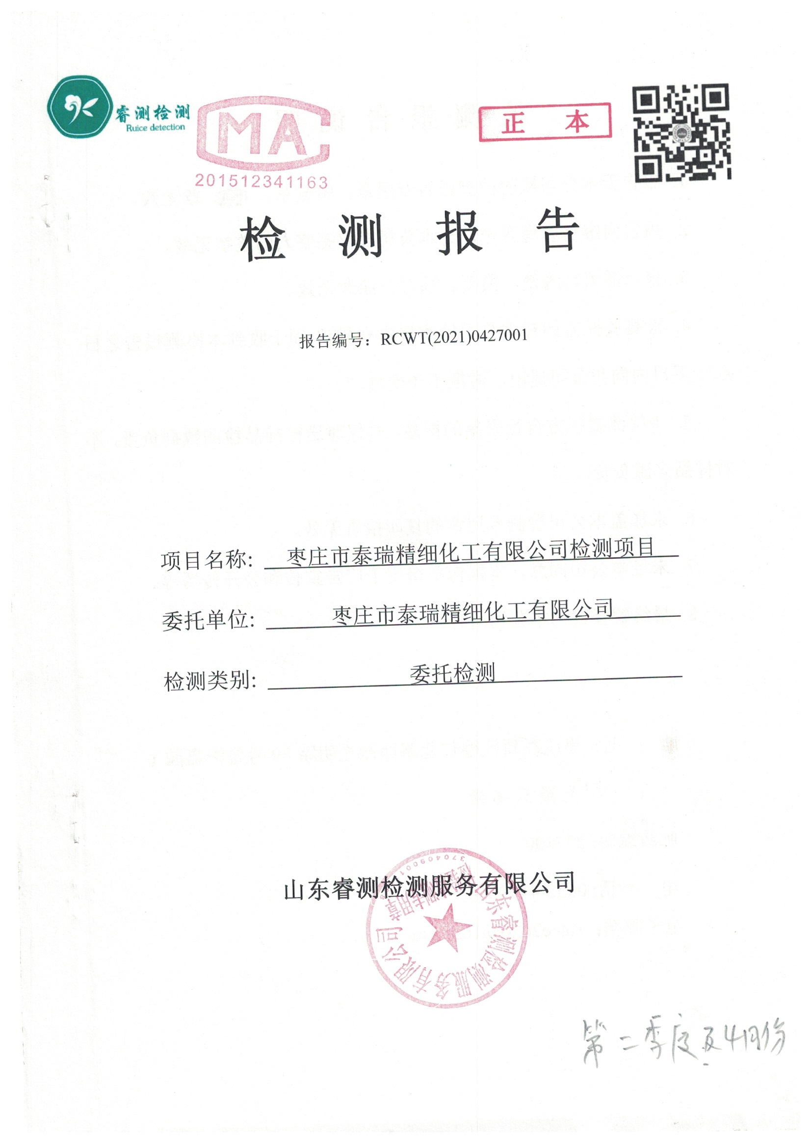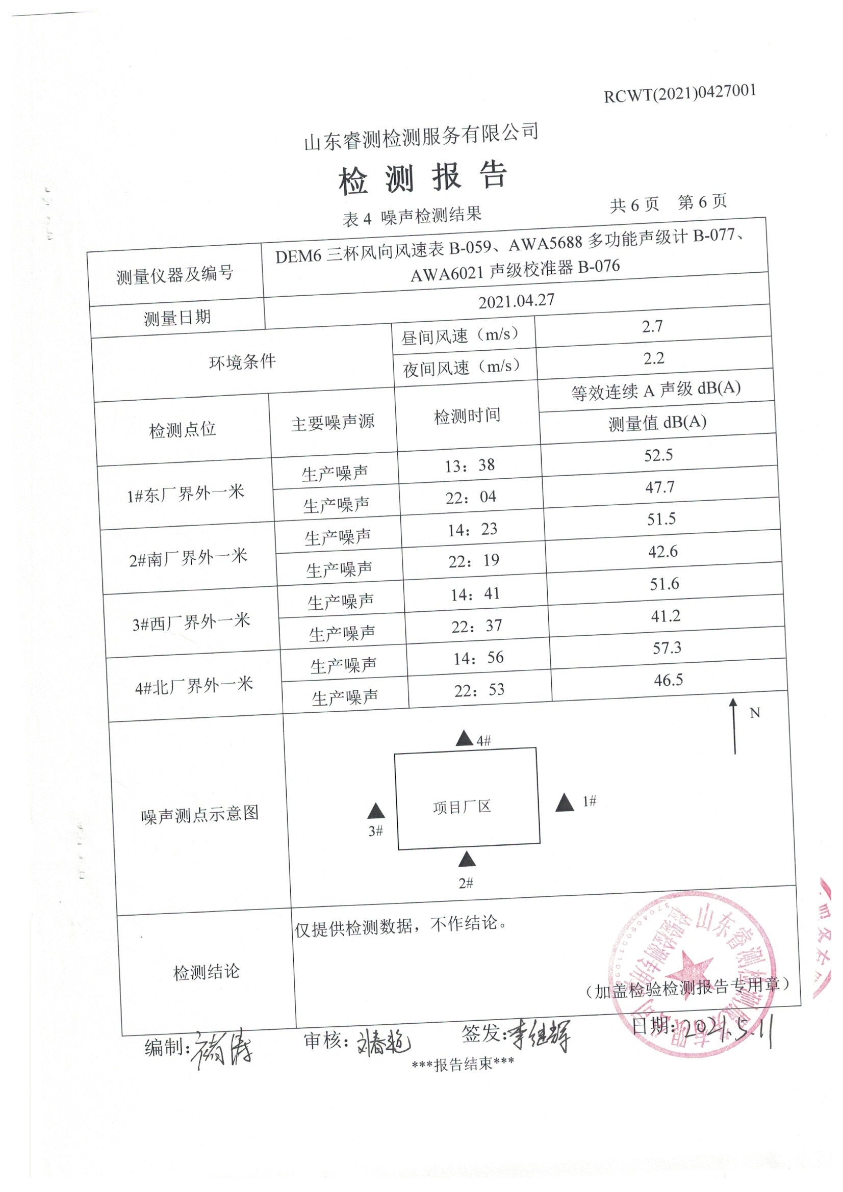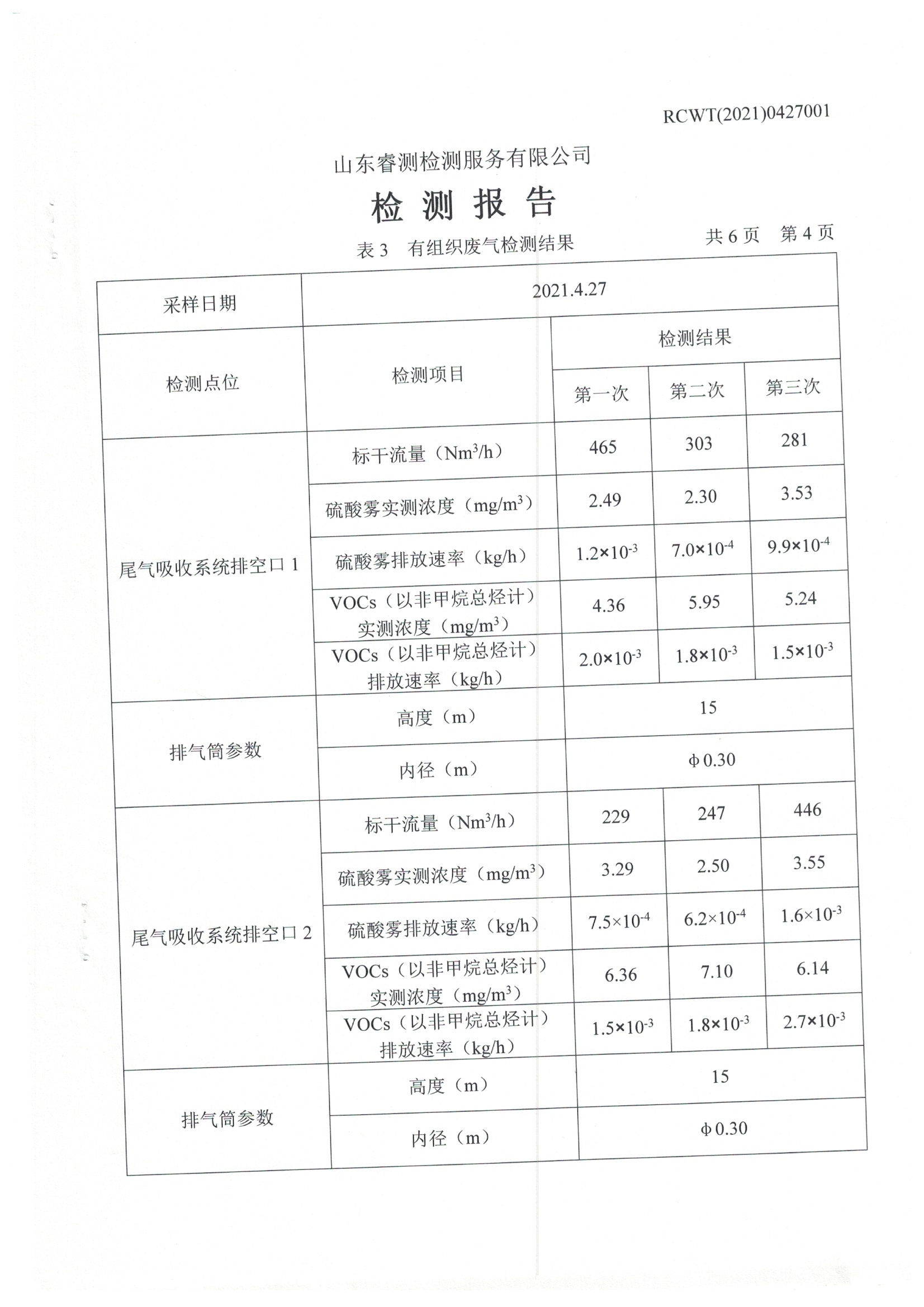 2021年4月份及季度自行檢測(cè)報(bào)告