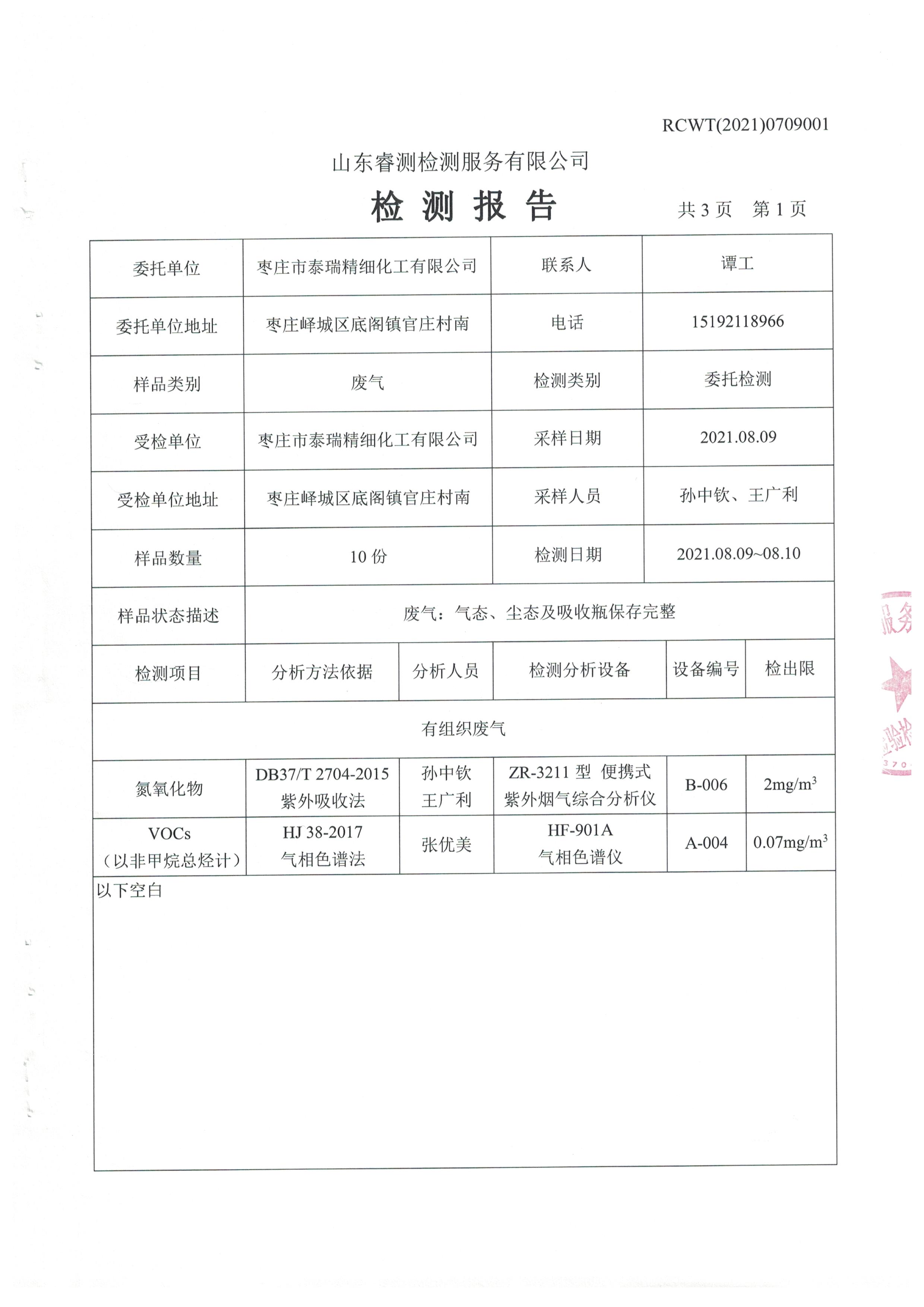 棗莊市泰瑞精細(xì)化工有限公司官網(wǎng)
