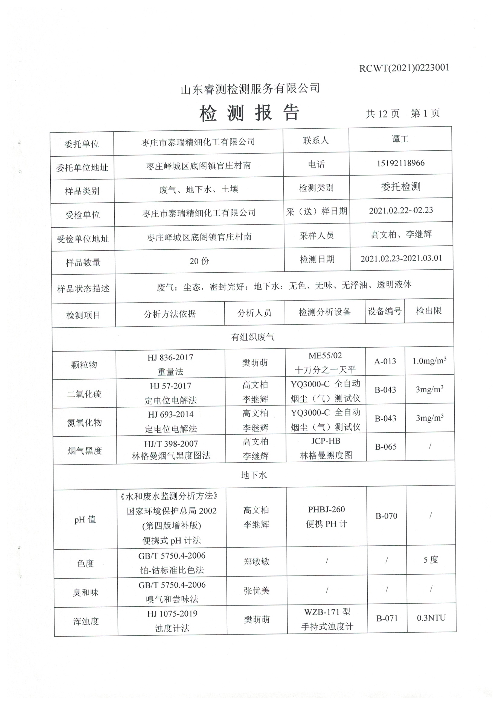 2021年土壤和地下水自行檢測(cè)報(bào)告