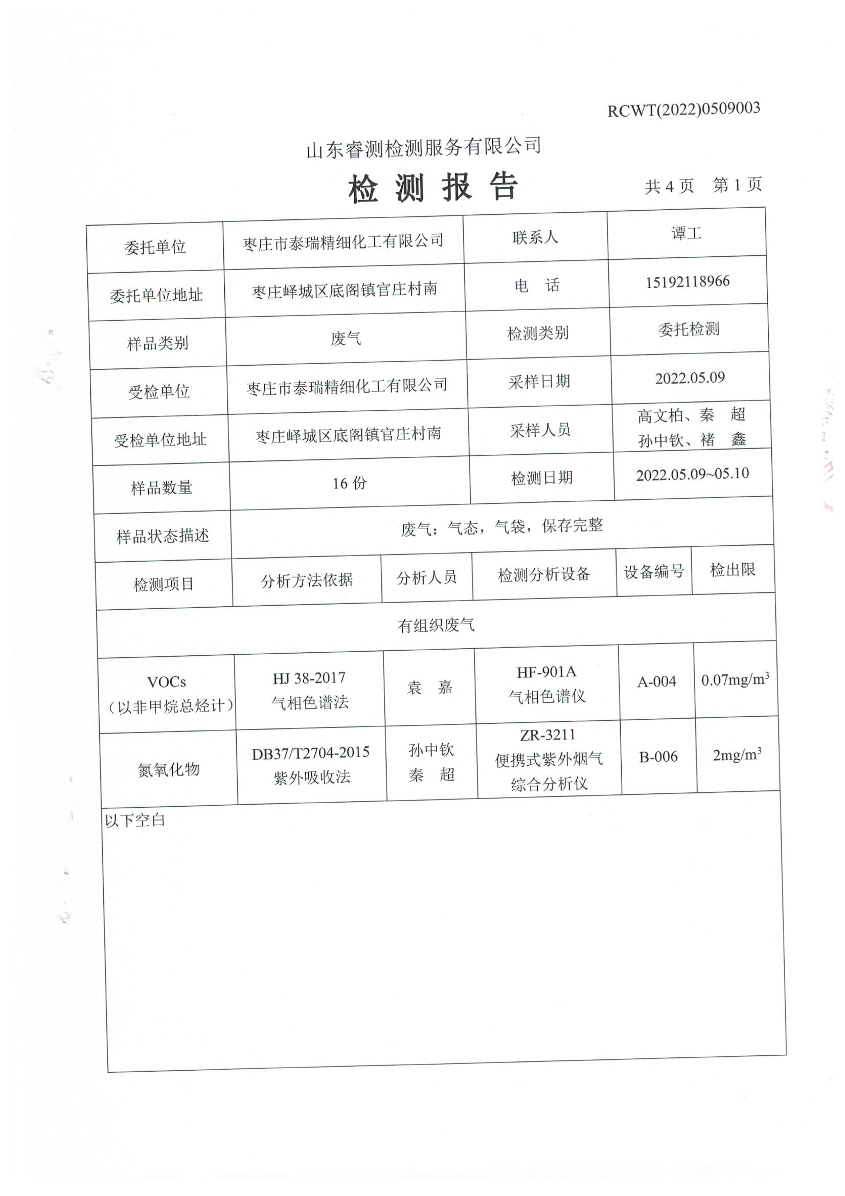 2022年5月份自行檢測(cè)報(bào)告