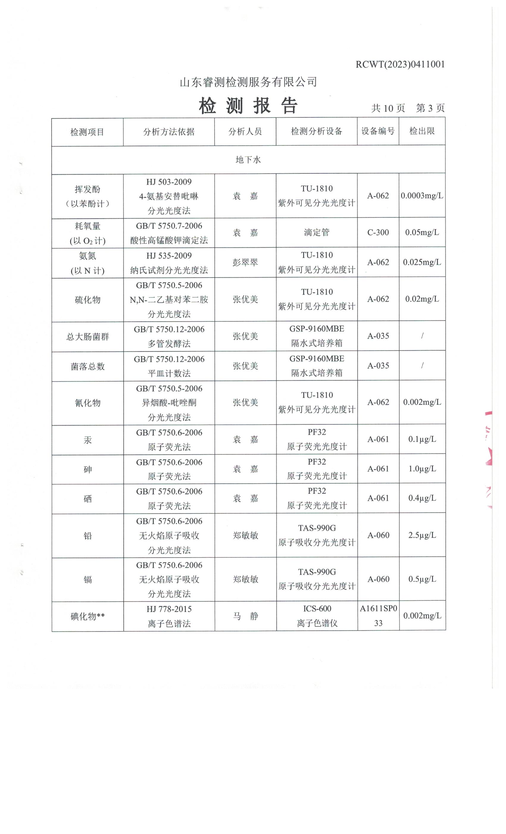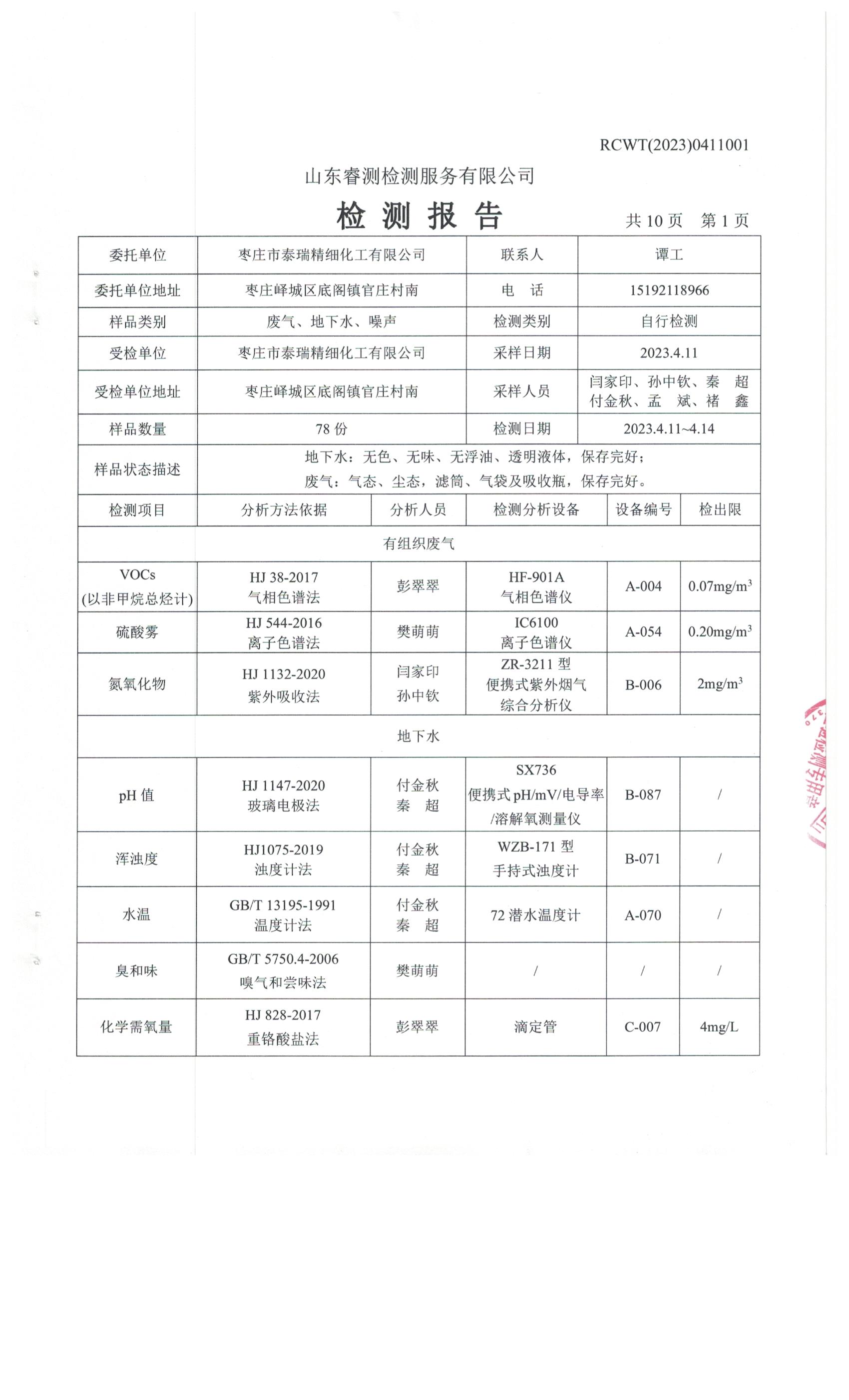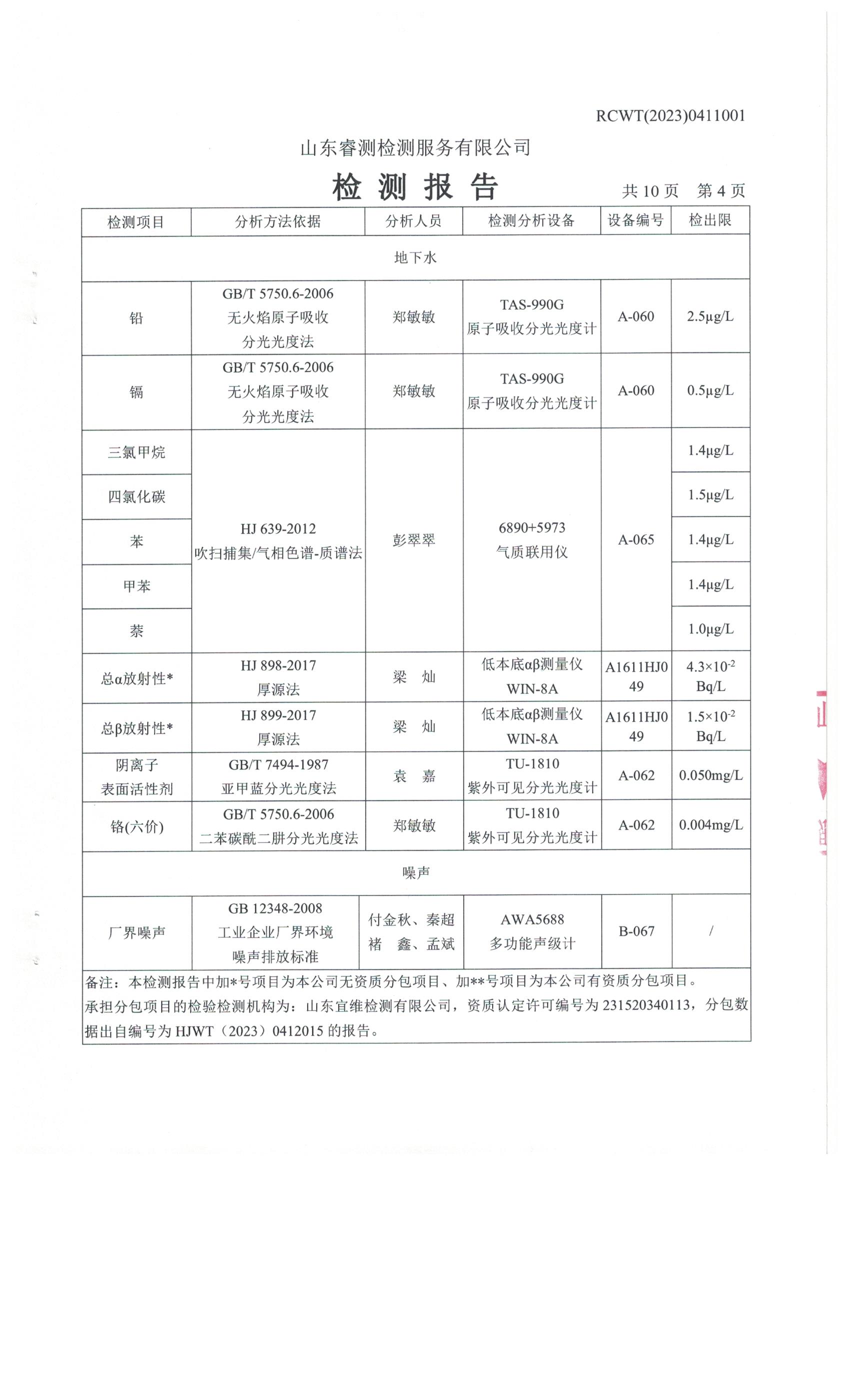 當(dāng)前位置:首頁(yè)>新聞中心>公司動(dòng)態(tài)>2023年第2季度(4月份)檢測(cè)報(bào)告